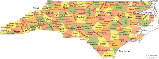 Amazon.: North Carolina County Map Laminated (36" W x 18.2